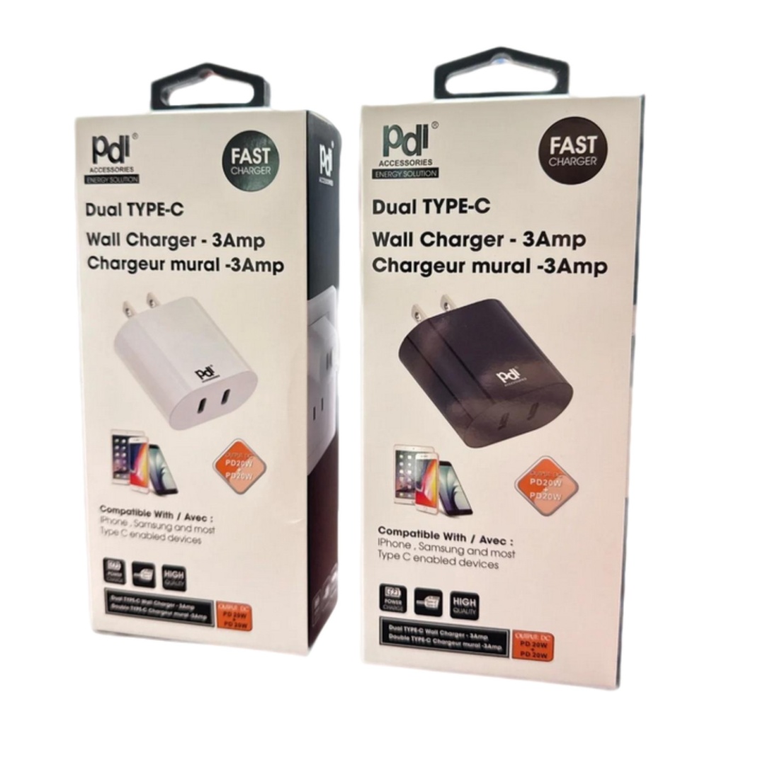 Wall Charger Dual USB C 3A Ass't Colours PDI