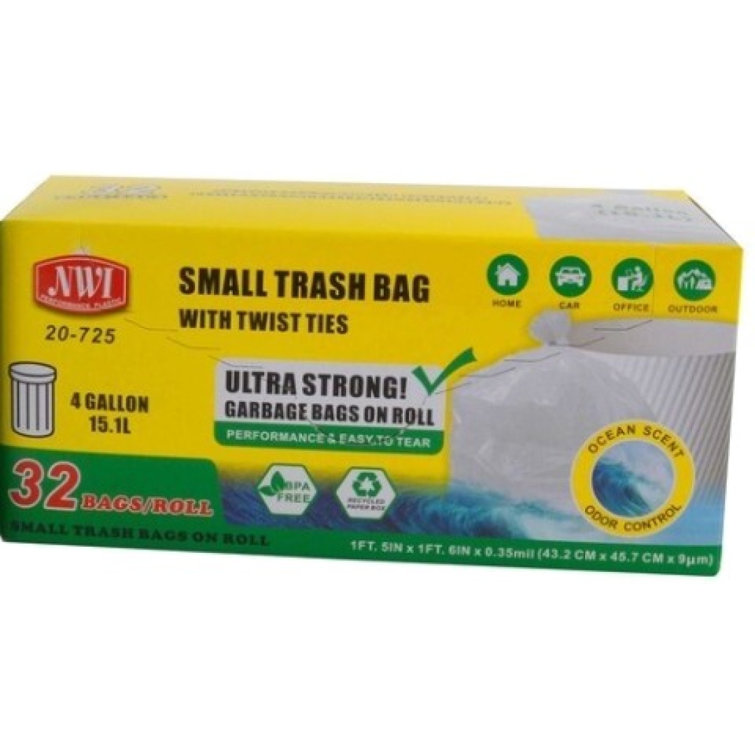 Trash Bag Ocean Scented 4 Gallon 32Pk 17x18" NWI"