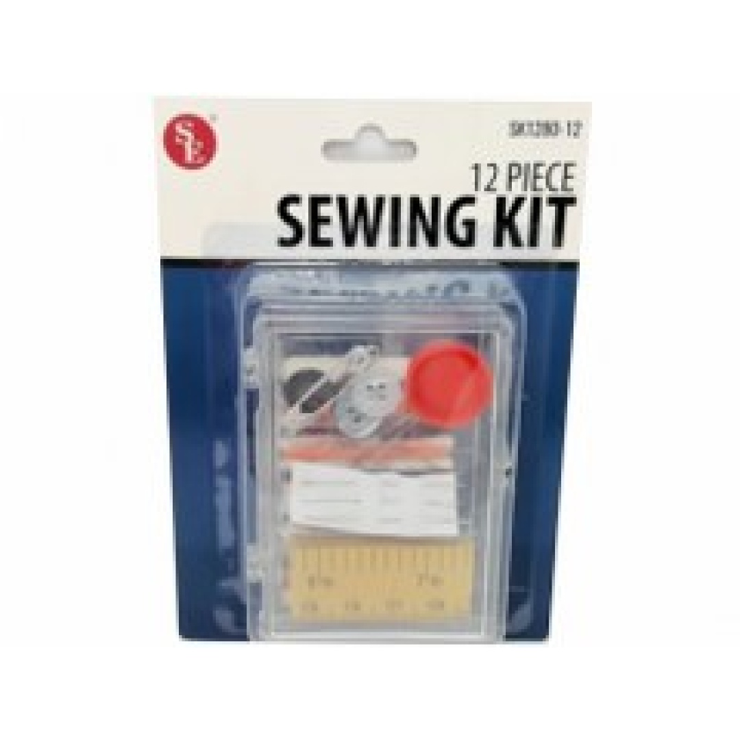 Sewing Kit 12pc. In Clear Plastic Case