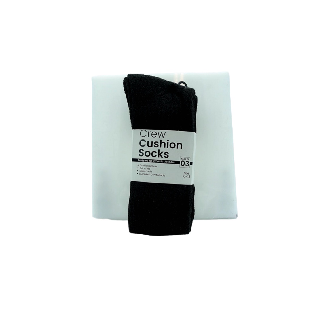Crew Cushion Socks Black 3pk. Size 10-13