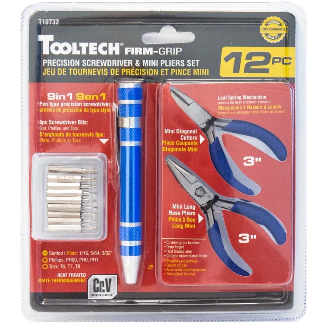Precision Set 12Pc Screwdrivers w/ Mini Pliers Tooltech